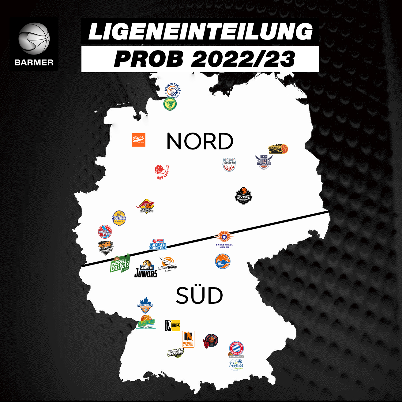 Nachdem damit alle Teams für die Saison 2022/2023 feststehen, konnte die Ligeneinteilung der ProB vorgenommen werden. Die Aufsteiger BBG Herford, ROTH Energie Giessen Pointers und RASTA Vechta Farmteam werden in der ProB Nord antreten und die Dresden Titans und die ART Giants Düsseldorf ersetzen. Die Aufsteiger BG Topstar Leitershofen/Stadtbergen und Porsche BBA Ludwigsburg nehmen die zusätzlichen Plätze in der ProB Süd ein, sodass beide Staffeln in der Saison 2022/2023 aus 13 Mannschaften bestehen werden.