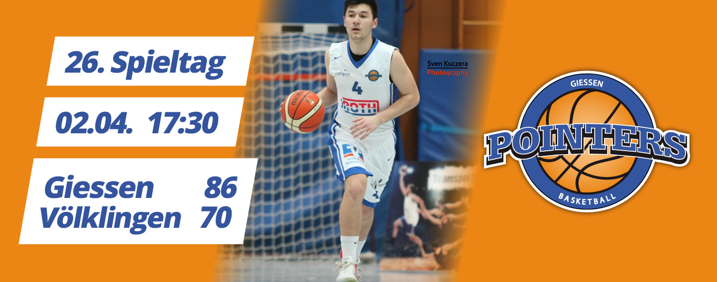 Aber dann ließen die Hausherren ihre Zuschauer jubeln, indem sie wieder das zeigten, was sie auszeichnet: schnellen, mannschaftsdienlichen Basketball. Die Pointers fanden immer wieder den gut positionierten Mitspieler, und schon der Start in die zweite Hälfte wurde mit einem 10:0-Lauf zu einem Erfolg. Gegen die altersmäßig sehr routinierten Saarländer zog der VfB nun sein Spiel durch und entschied das dritte Viertel mit 28:8 für sich, womit die Partie im Prinzip entschieden war. Danach verwaltete Gießen den Vorsprung sicher bis zur letzten Sirene der Spielzeit.
